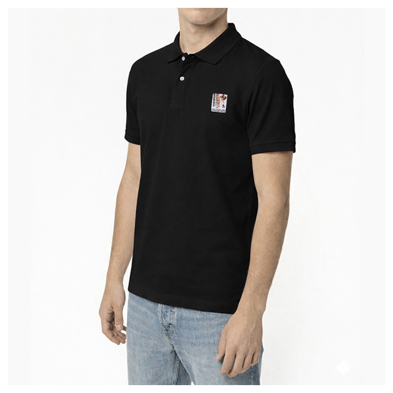 Black Blackpeuf polo 100% organic cotton – chic style with illustrated mountain design