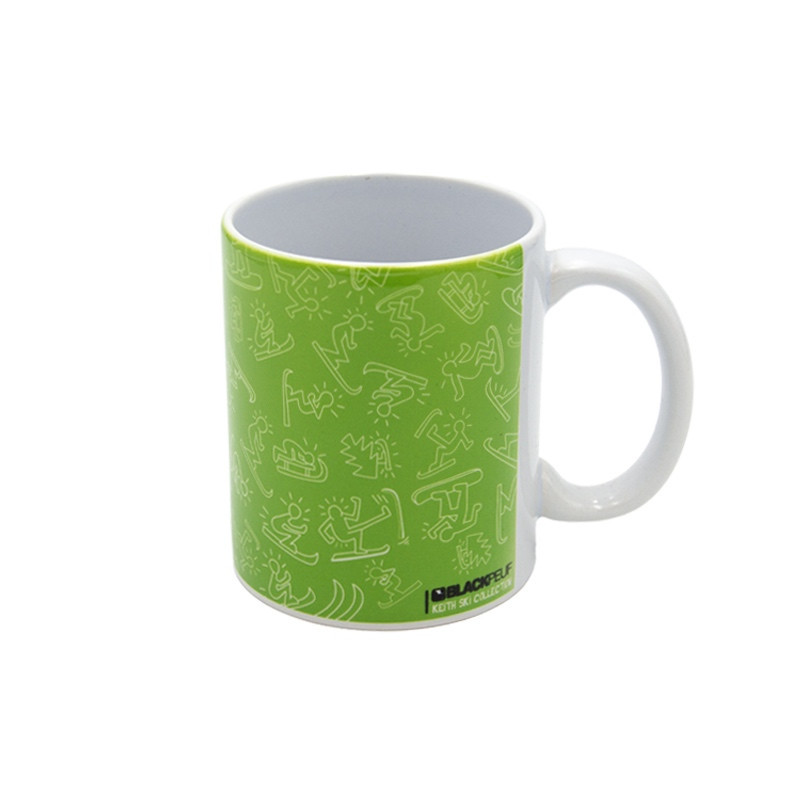 L'opera d'arte colorata abbraccia la tazza e offre una vista panoramica.